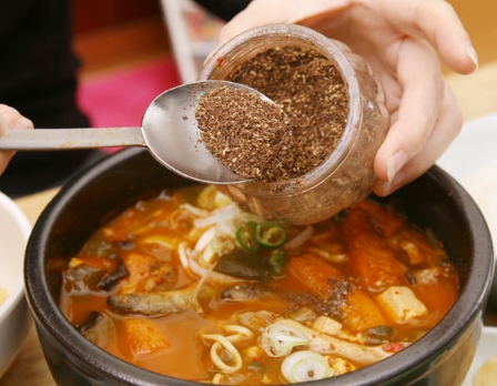 추어탕 먹을 때 후춧가루나 산초가루와 같은 향신료를 넣어 먹으면 더욱 풍미가 있습니다. 특히 추어탕을 먹을 때 산초를 넣어 먹으면 미꾸라지의 비린내를 제거할 뿐만 아니라 위장을 자극하여 신진대사를 촉진하여 추어탕의 영양가를 더욱 높여 줍니다.